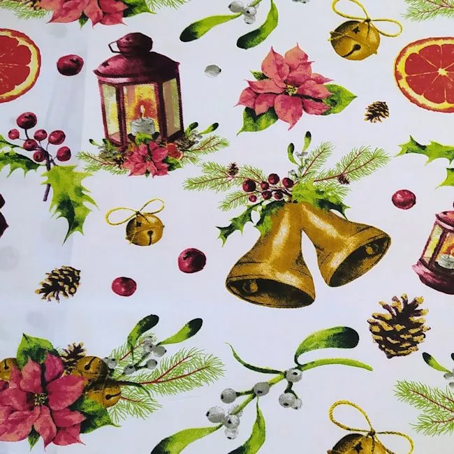 Bavlněná látka vánoční zvony š.160 cm