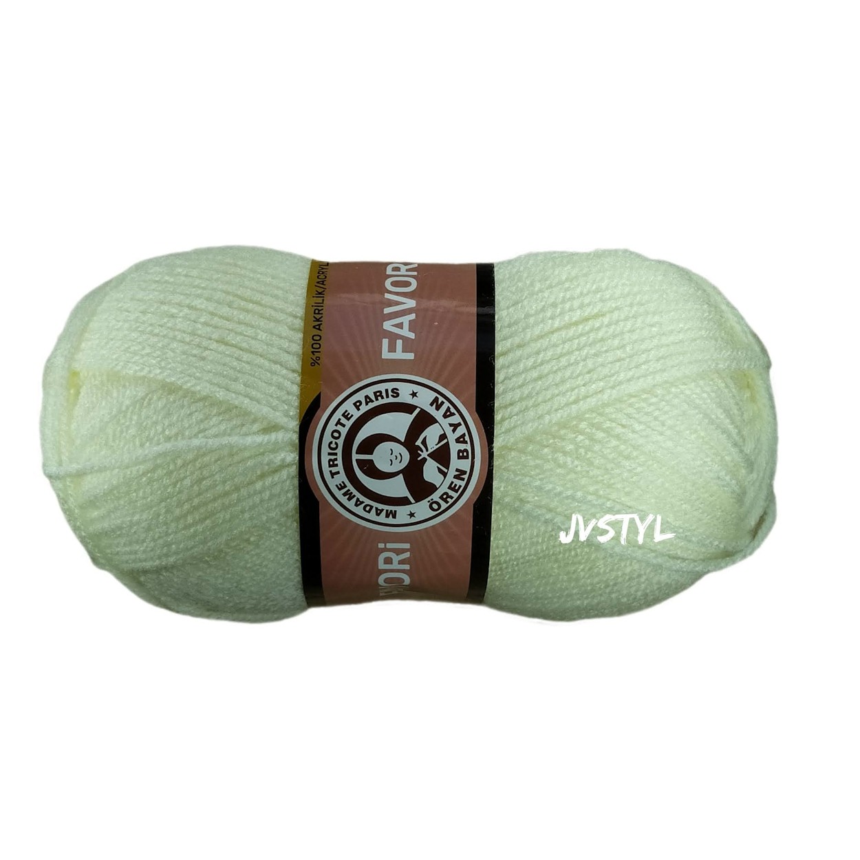 Příze FAVORI krémová 100g je kvalitní akrylová příze s hladkou strukturou a jemným krémovým odstínem, který působí elegantně, přírodně a nadčasově. Díky své měkkosti, pevnosti a snadné údržbě je ideální pro pletení i háčkování svetrů, šál, čepic, dek nebo bytových doplňků. Krémová barva se skvěle kombinuje s dalšími odstíny a hodí se pro dětské i minimalistické projekty.