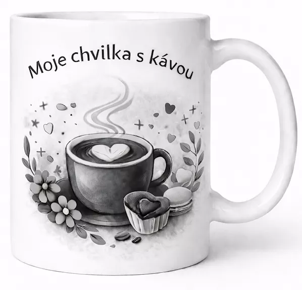 Hrnek s potiskem 330 ml chvilka s kávou černý