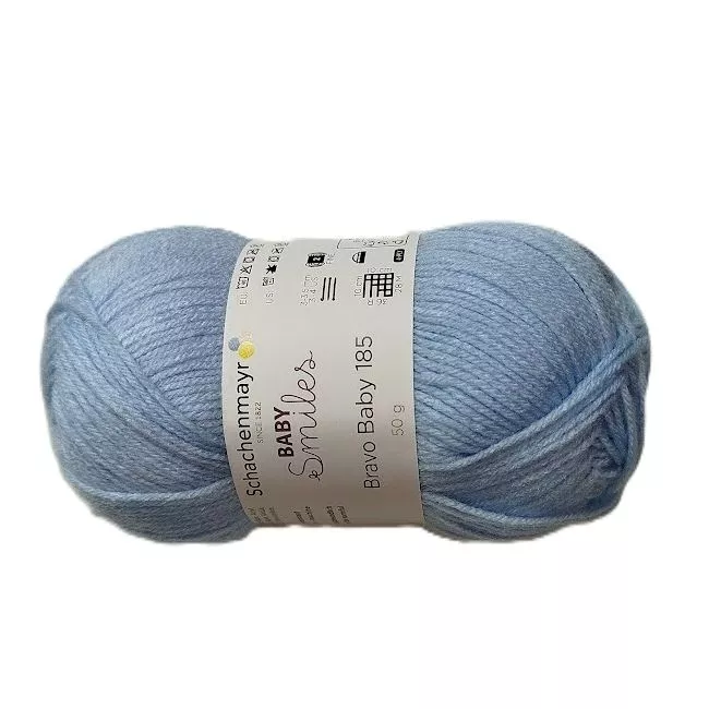 Příze Schachenmayr Baby Smiles Bravo Baby 185 v jemném světle modrém odstínu je ideální volbou pro háčkování a pletení dětských oděvů a doplňků. Je mimořádně měkká, šetrná k citlivé pokožce miminek a dermatologicky testovaná. Díky své univerzální síle a snadné údržbě je perfektní pro čepičky, svetříky, dečky i hračky. Příze se snadno zpracovává, neškrábe a je vhodná i pro praní v pračce.