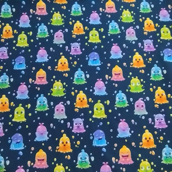 Veselý zimní softshell s motivem barevných smajlíků na tmavě modrém podkladu je ideální volbou pro dětské oblečení, kreativní doplňky i originální outdoorové projekty. Materiál je odolný vůči větru a vlhkosti, přitom příjemně hřejivý díky fleecové vrstvě na rubu. Skvěle se hodí na bundy, kalhoty, čepice, rukavice nebo fusaky.