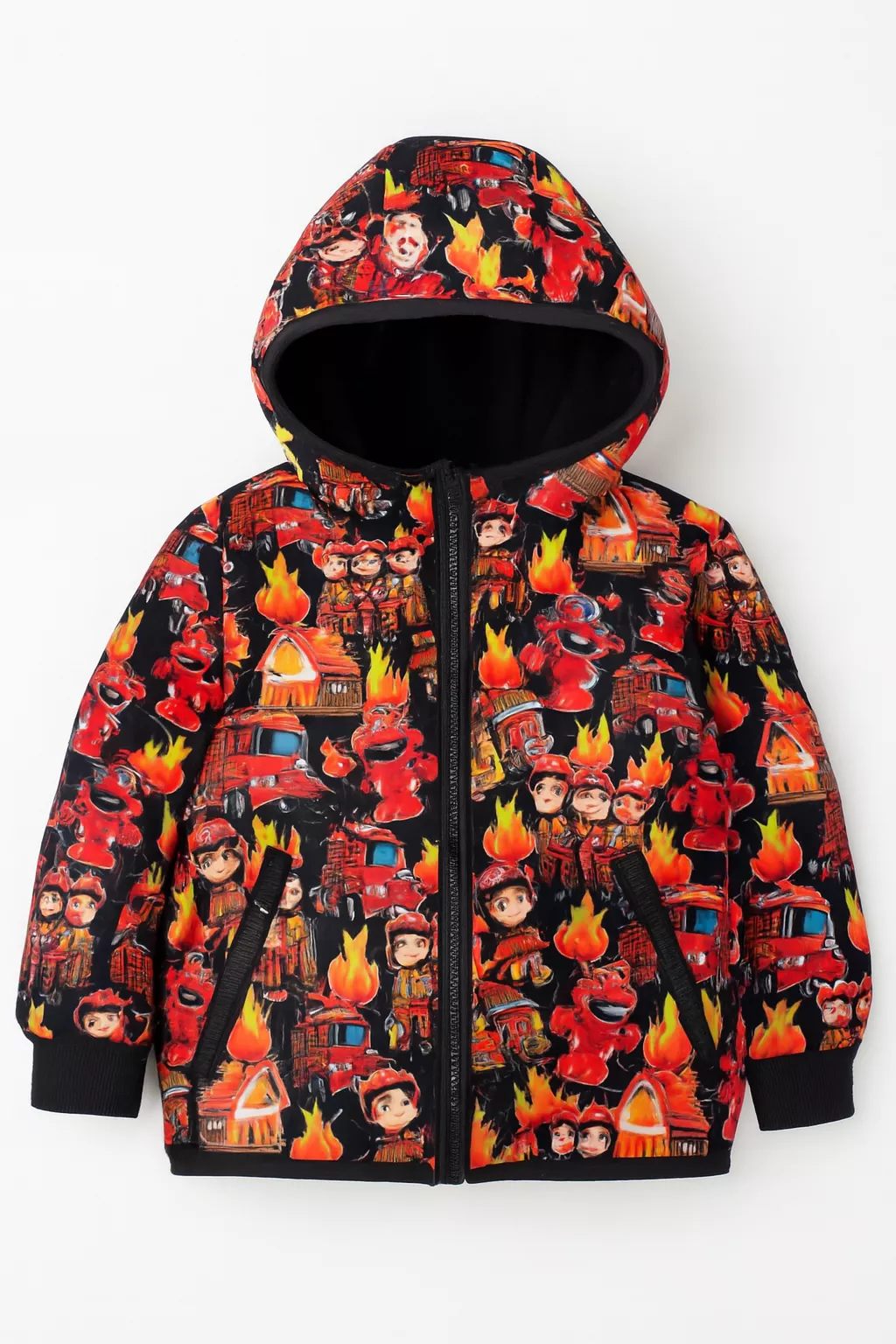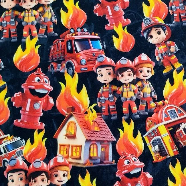 Softshell zimní – motiv hasiči na černém podkladu s fleecem (šíře 145 cm) Robustní zimní softshell s originálním potiskem hasičských motivů na černém podkladu. Vnitřní strana je zateplená měkkým fleecem, který zajišťuje tepelný komfort i v chladném počasí. Ideální pro šití dětských bund, kalhot, overalů nebo sportovních doplňků. Materiál je voděodolný, větruvzdorný a zároveň prodyšný – perfektní volba pro aktivní děti i dospělé.