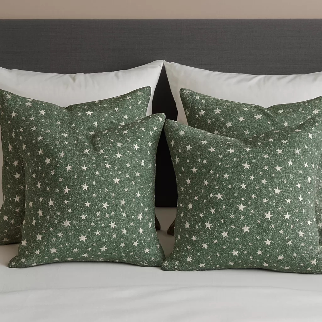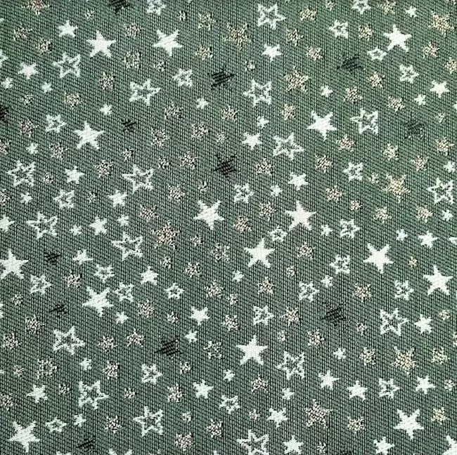 Vánoční gobelínová látka hvězdičky na zelené š.160 cm